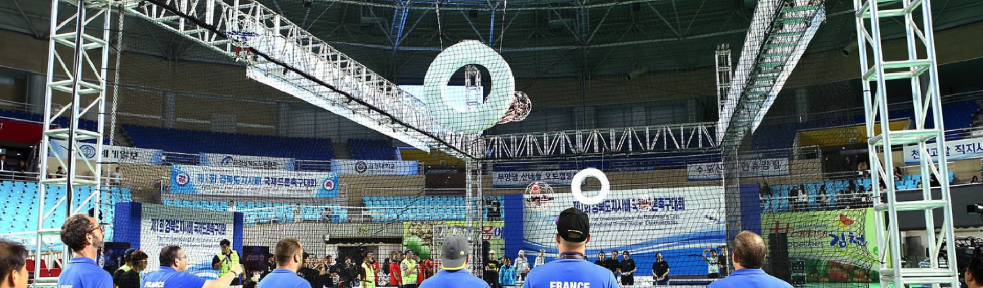 Only one player on each team - the “striker” - can score by flying his or her drone through the circular goal post placed 3m to 3.5 m above ground. The remaining players must help their striker or prevent the opposition’s ‘striker’ scoring by protecting their goal.